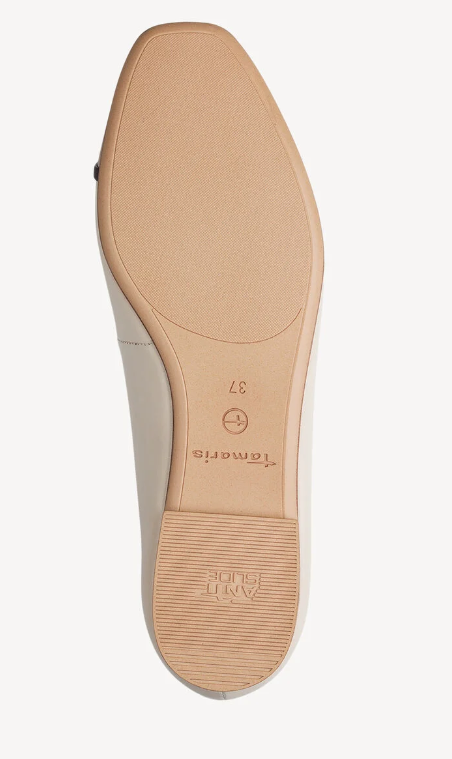 Ανακαλύψτε αυτές τις μπαλαρίνες Tamaris, ιδανικές για καθημερινή χρήση αλλά και για ειδικές περιστάσεις. Το τετράγωνο σχέδιο στη μύτη αναδεικνύει το μοναδικό σας στυλ, ενώ η σόλα AntiSlide προσφέρει σίγουρη στήριξη σε κάθε βήμα. Το εξαιρετικά επίπεδο τακούνι και η τεχνολογία Touch-It υπόσχονται άνεση και απαλότητα, είτε βρίσκεστε στη δουλειά, είτε για βόλτα, είτε με φίλους. Φορέστε τες εύκολα και απολαύστε μια ανάλαφρη αίσθηση που σας συνοδεύει παντού, διαθέσιμες σε μεγέθη 36 έως 41.